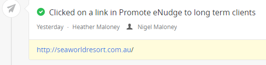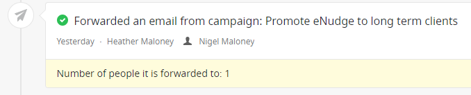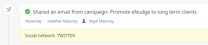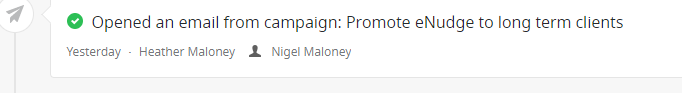 For an email campaign named “Promote Enudge to long term clients” here’s how those updates will look in your contact’s activity feed: