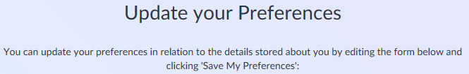When your contact clicks on an ‘Update your Preferences’ link, it opens up an Enudge screen. The instructions at the top of this screen read as follows: