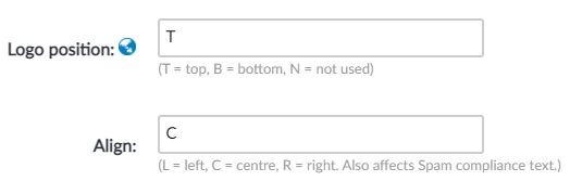 Choose the alignment of the logo by typing in the following letters in the Align field, L = left, C = centre and R = right. Please note that the alignment option also determines the alignment of the Spam compliance text at the bottom on your email. If your email message is centred we recommend that you enter ‘C’ in the alignment field, to ensure that the logo, email, and footer are all centred in the email window.